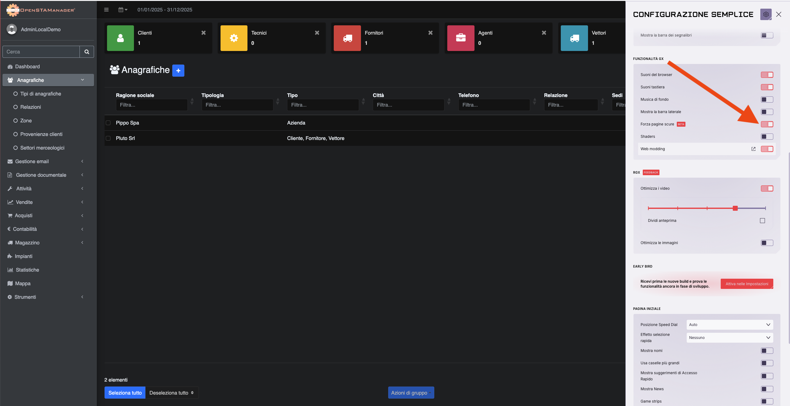 Oggi per divertimento mi sono messo a modificare Openstamanager in modo da avere una modalita' dark totale, con l'aiuto di ChatGPT. Senza peraltro inviare file interi al bot ma solo le parti di riga richieste. Il risultato e' questo!