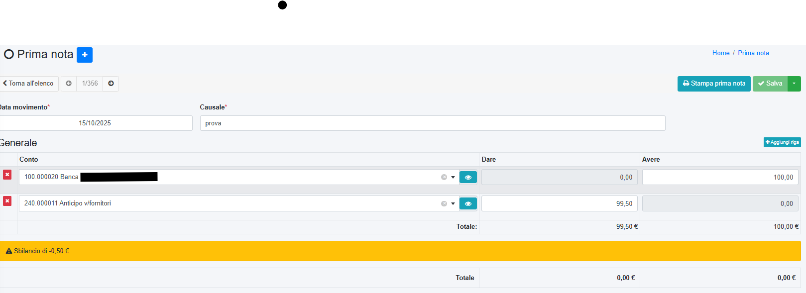 a seguito aggiornamento a versione 2.9.3 quando vado a salvare i movimenti di prima nota vengono mantenute le prime due righe mentre tutte le altre si cancellano e devo reinserirle.