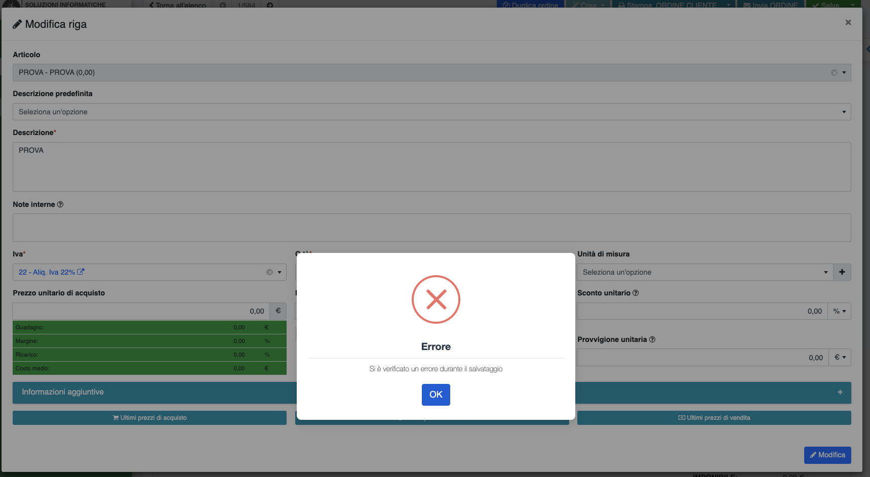 ma invece se si prova a modificare una riga di una voce a magazzino esce l'errore. 🤔🤷🏻♂️