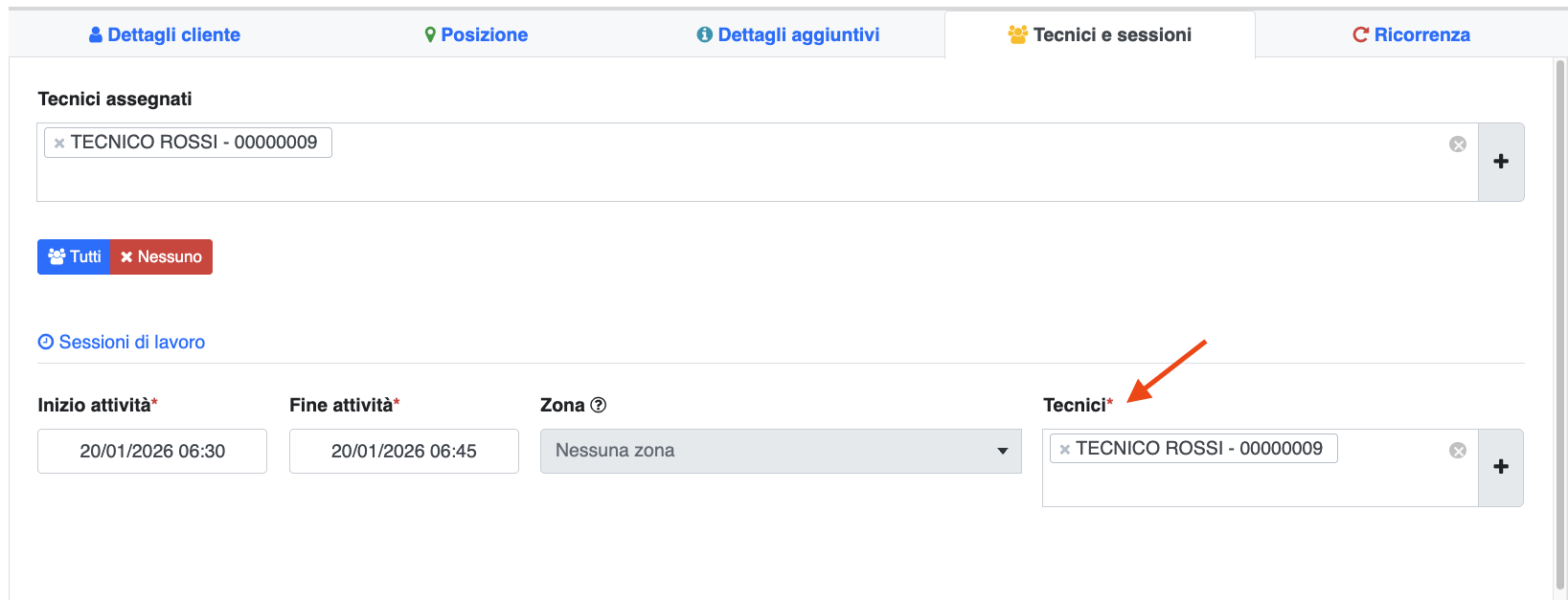 ma indicare un tecnico in Tecnici assegnati di fatto creare un promemoria visibile a dx della dashboard